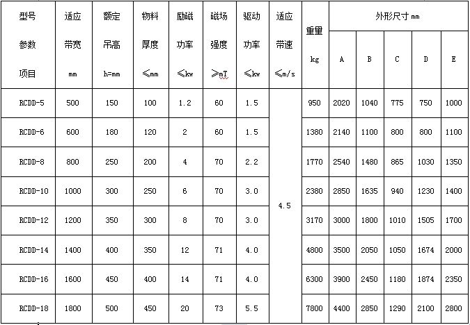概述: RCDD系列干式自卸式电磁除铁器是一种用于自动清除粉状或块状非磁性物料中的杂铁的除铁装置。其内部采用电工专用树脂浇注,自冷式全密封结构。具有透磁深度大、吸力强、防尘、防雨、耐腐蚀等优点,在极其恶劣的环境中仍能可靠运行。 外形尺寸图: